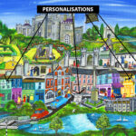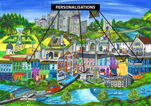Delight the recipient by adding your own headline or message to the sandwich board in the centre of the print! If you do not choose this option, then the sandwich board will not appear in the print. See picture in gallery here.