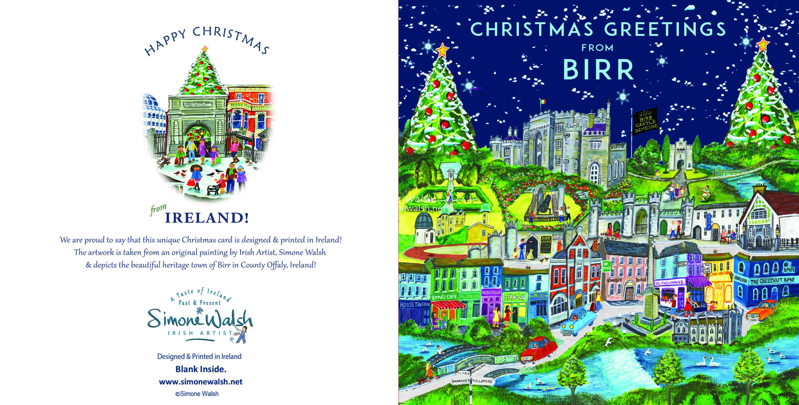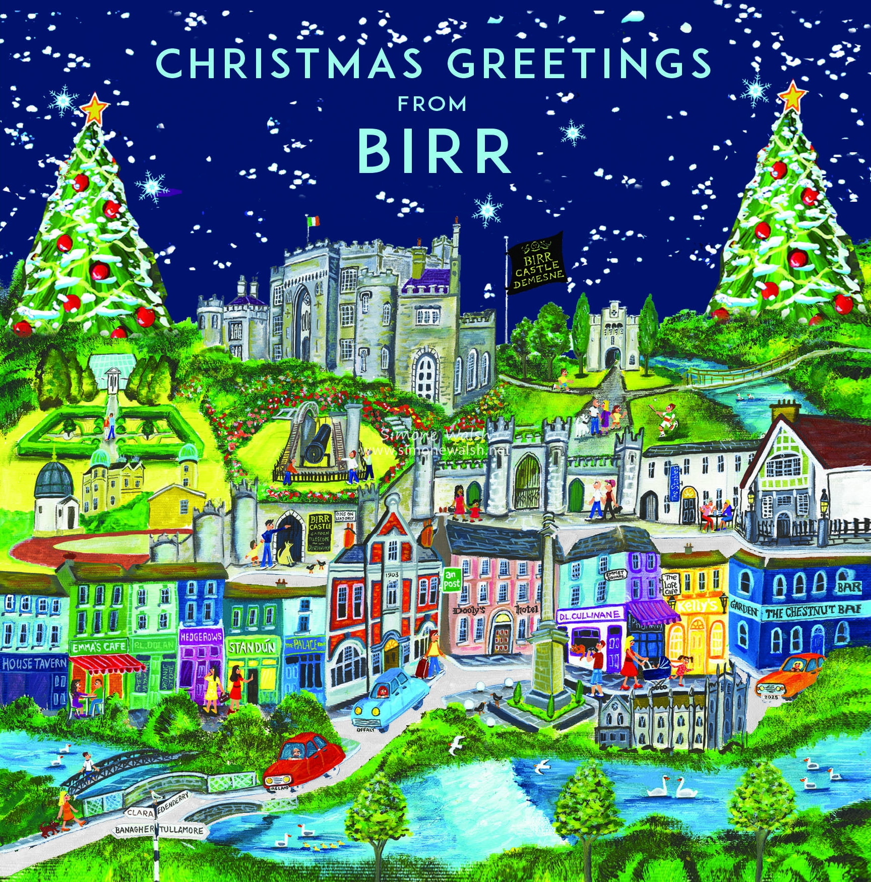 Charming Christmas Card depicting Birr Castle and Town in festive glory!